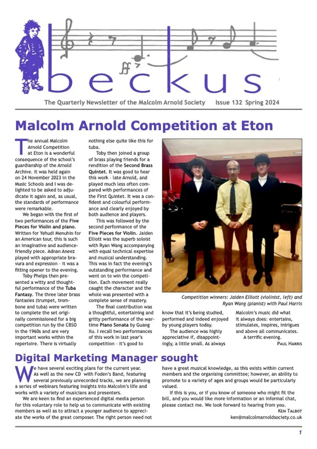 For more detail https://www.malcolmarnoldsociety.co.uk/beckus-newsletter/